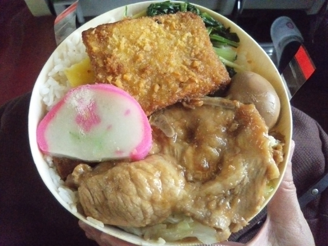 車内でお弁当。