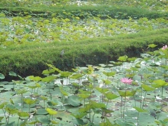 周りは蓮池。