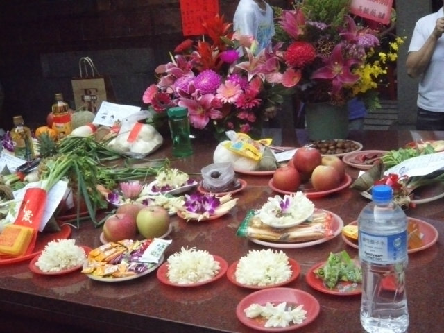 ガイドさんにお供え物の意味を教えてもらいました。