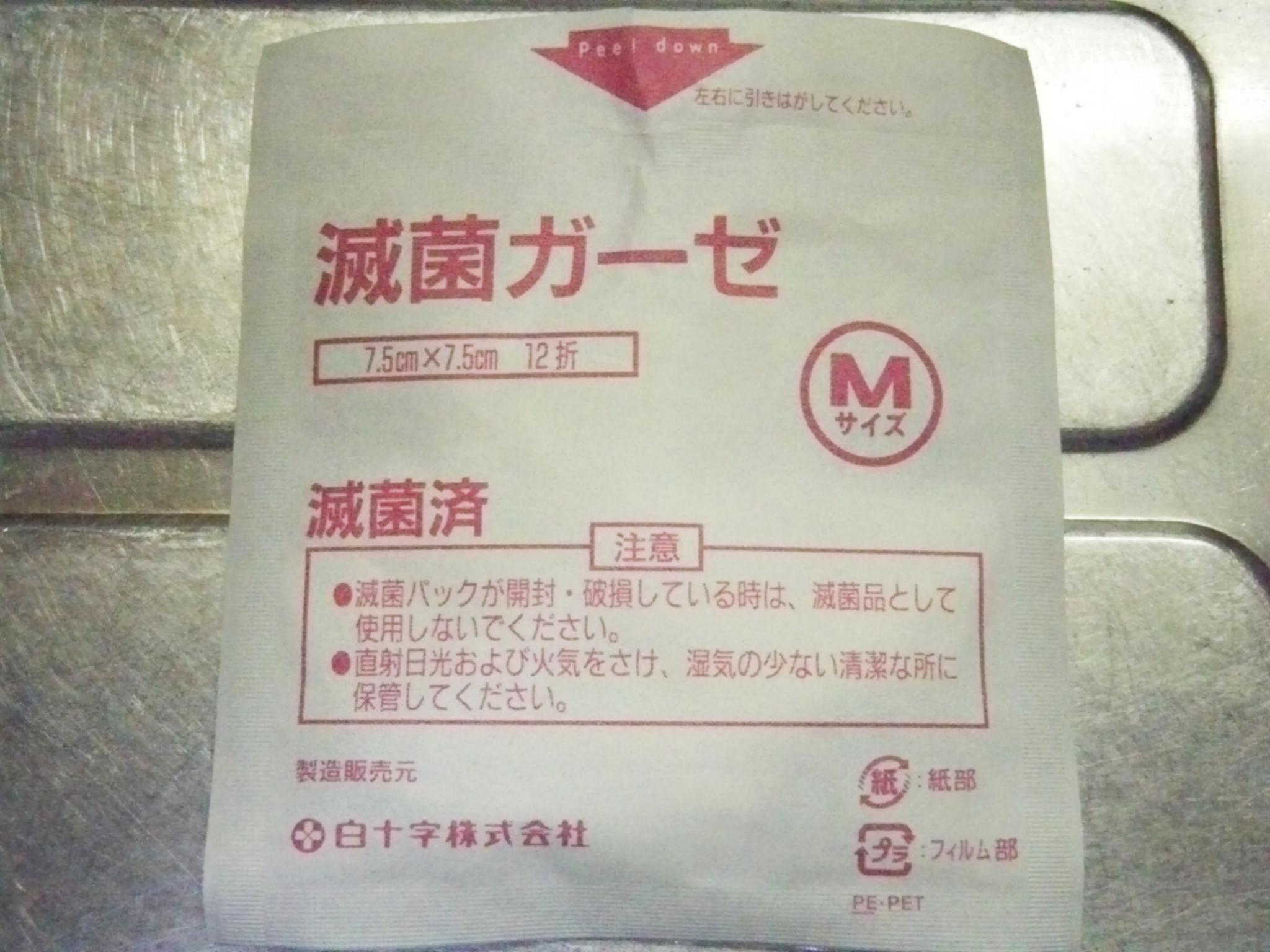 やっと見つかったのがこれ、滅菌ガーゼです。
