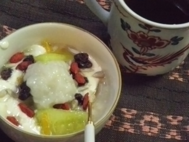 しばらく朝食をフルーツと豆乳ヨーグルトで過ごしていました。