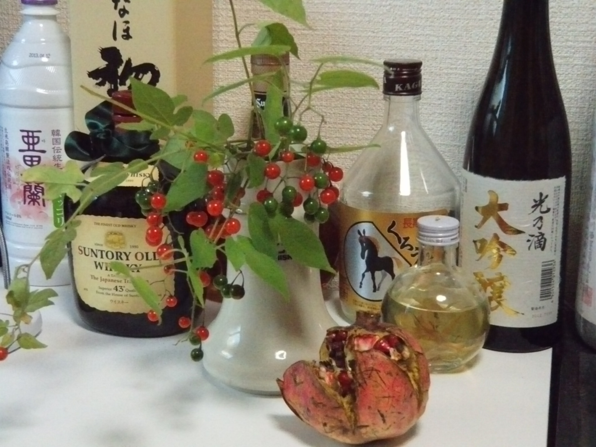 背後に酒瓶が林立してるのがいかにも我家らしい(汗)