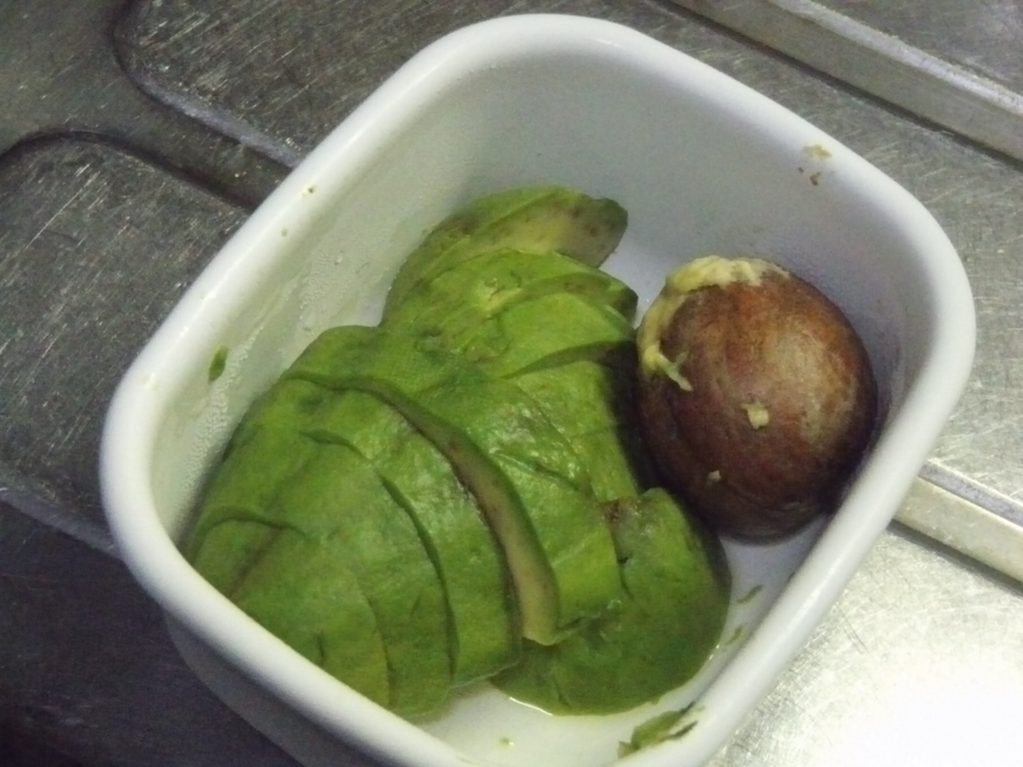 お昼頃に皮を剥いて切り分けたアボカドのその夜の状態です。