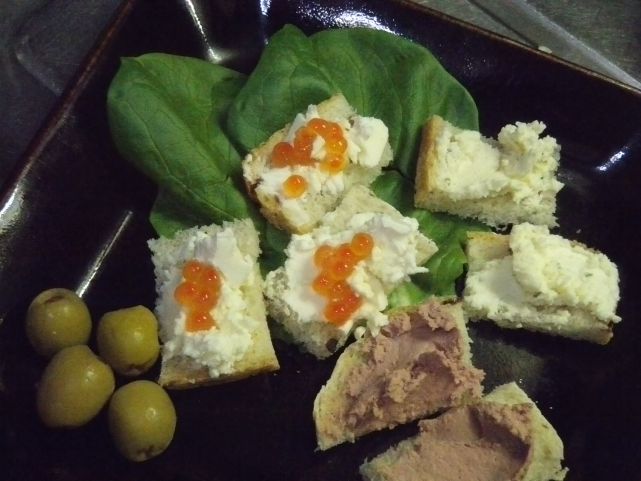 自家製ベーコン入りパンを台にしたカナッペ等。