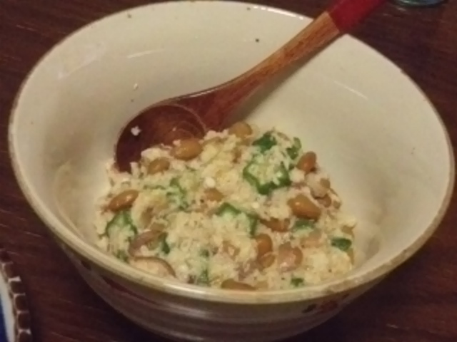 とろろ、納豆、オクラ、茗荷のトロトロ丼