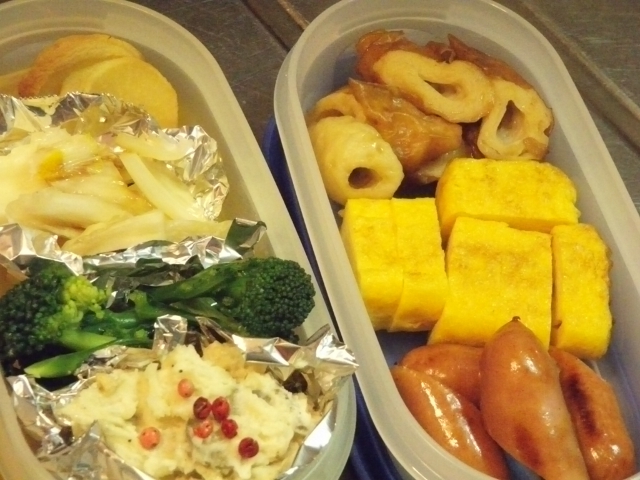 で、朝食の支度の傍ら簡単弁当を仕込みました。