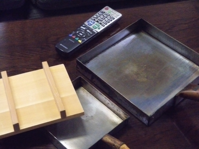 銅製の立派な卵焼き器と鬼簾です。
