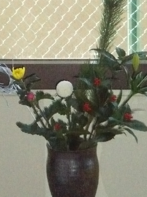 寮の玄関に飾ったお正月の花。