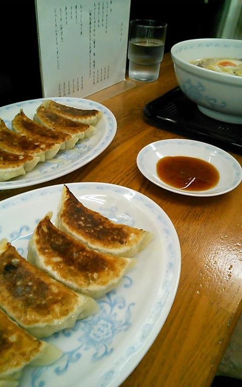 餃子2皿、味噌ラーメン、白ご飯をお願いして二人でシェア。