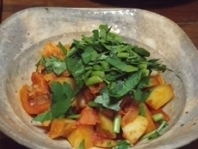 使いかけのトマト缶があったし、裏庭にイタリアンパセリが繁茂してるし。