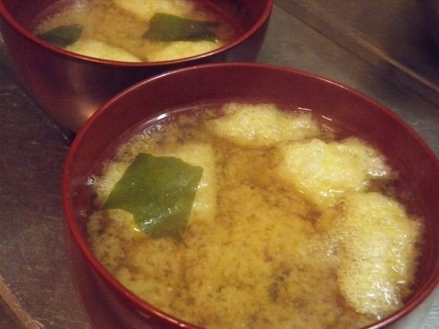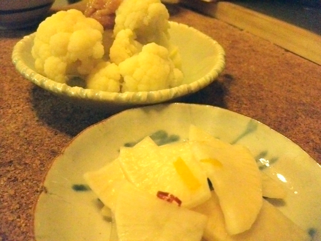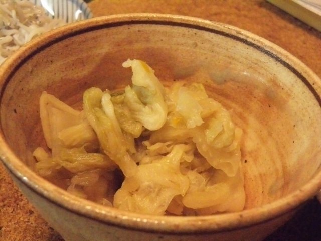 白菜の浅漬けとお昼の残りの味噌汁で。