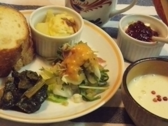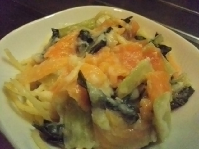 ちょっと手抜きして電子レンジで暖めたじゃが芋の薄切りと