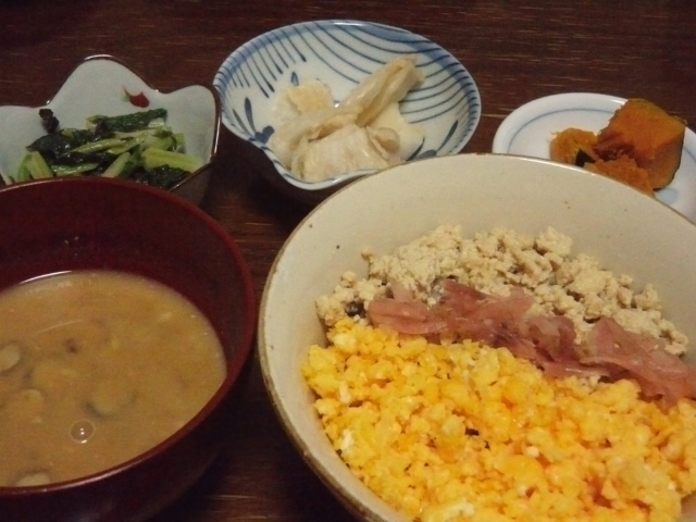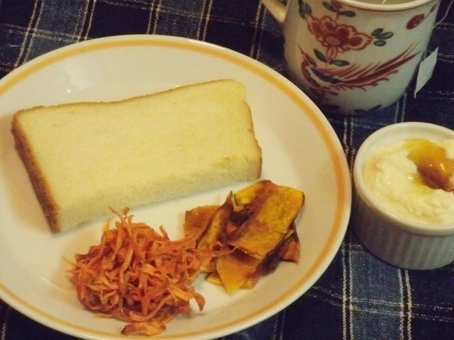 あとのおかずは煮南瓜、干し蕪の葉のナムル風、白菜漬け、味噌っかす汁でした。