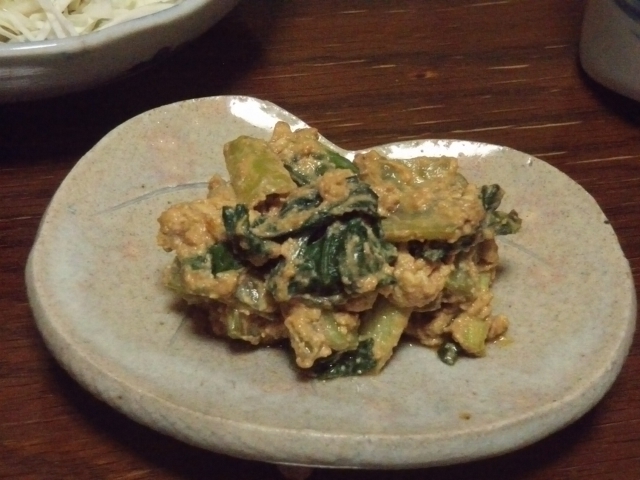 これは湯掻いた小松菜と和え物にしたもの。