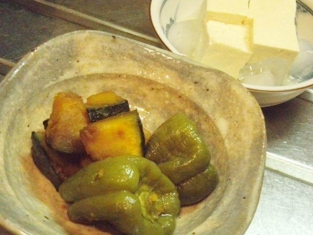 図書館で借りてきた有元葉子さんの「和のおかず」に載っていた「ピーマンとかぼちゃの煮もの」。