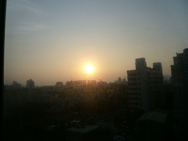ホテルから見た朝日。
