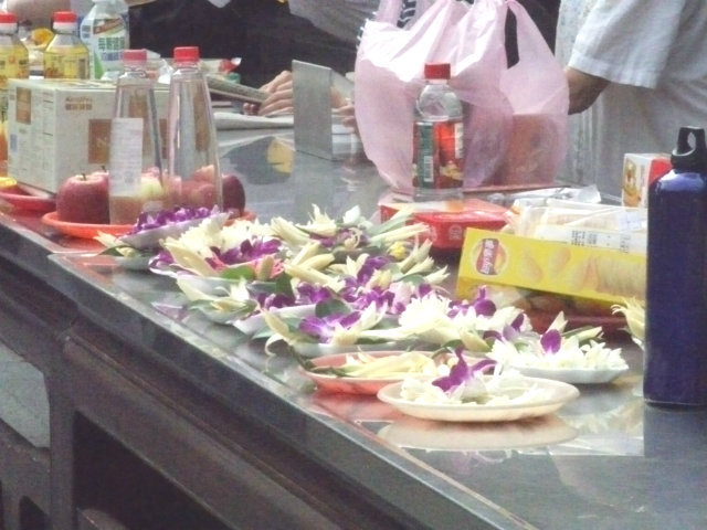 ガイドさんにお供え物の意味を教えてもらいました。