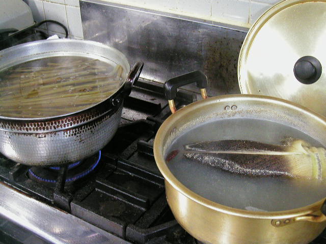 こう大量だと蕗の皮剥きが一仕事なんですよね。