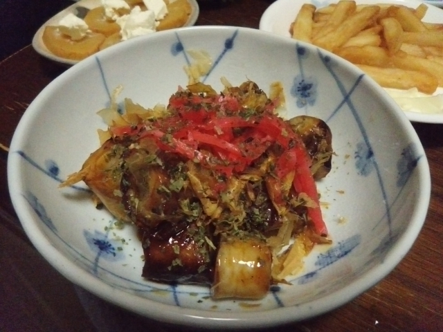 先日のおでんで残った竹輪のたこ焼き風。