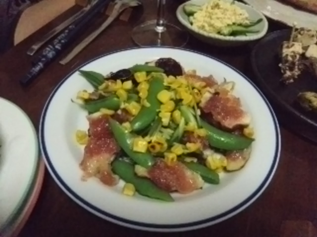 無花果、胡瓜、玉蜀黍、スナップ隠元などで