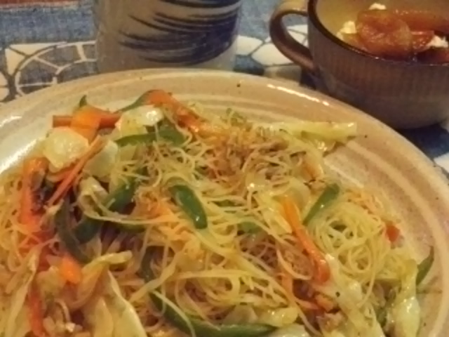 人参、キャベツ、玉葱、ピーマン等を刻みます。