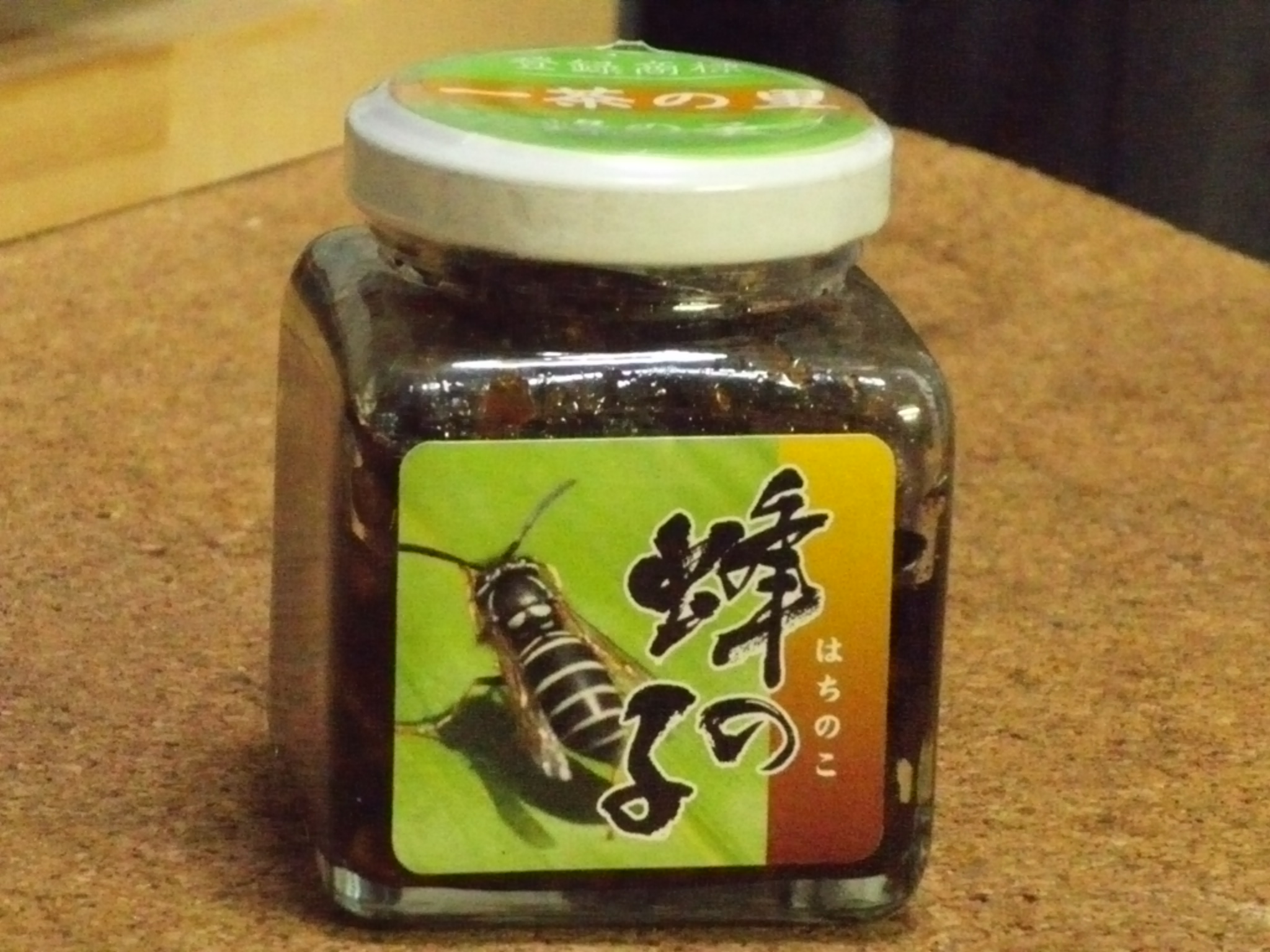 寮生さんが旅行土産に、柿と蜂の子の佃煮を持ってきてくれました。