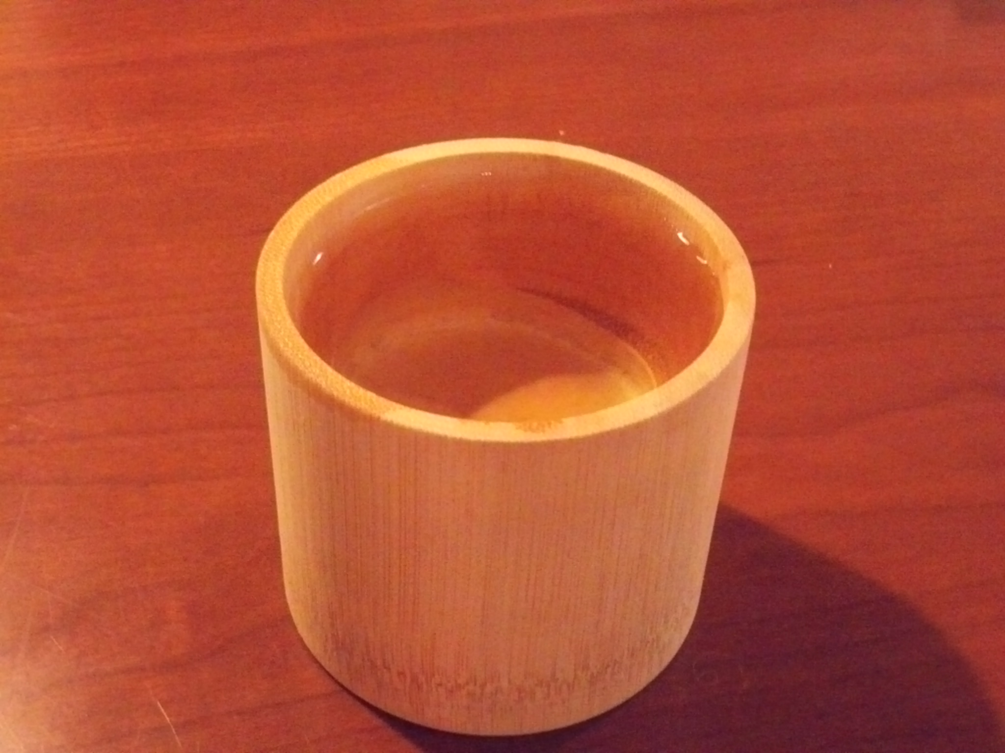 私はこんな竹の器で日本酒を頂きました。